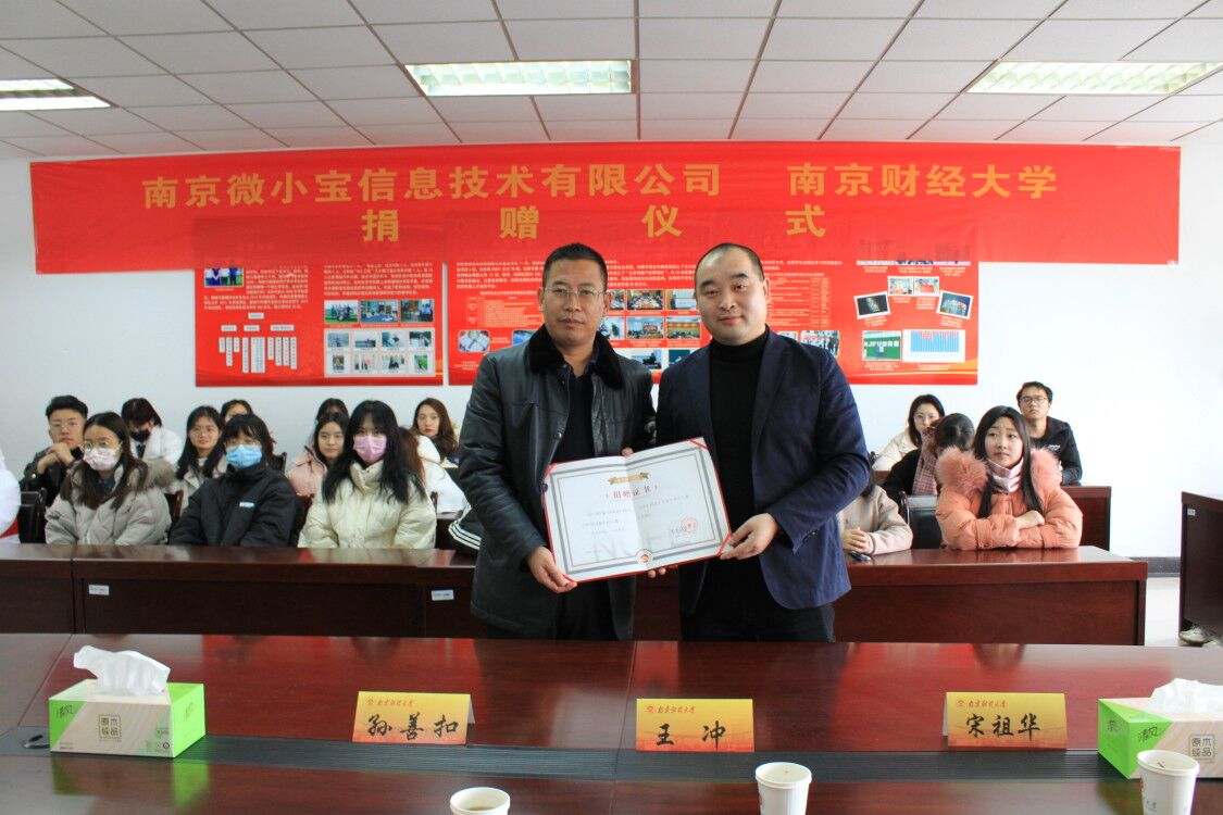 三方共同签署捐赠协议,王冲副处长代表学校向孙善扣总经理颁发了捐赠证书。