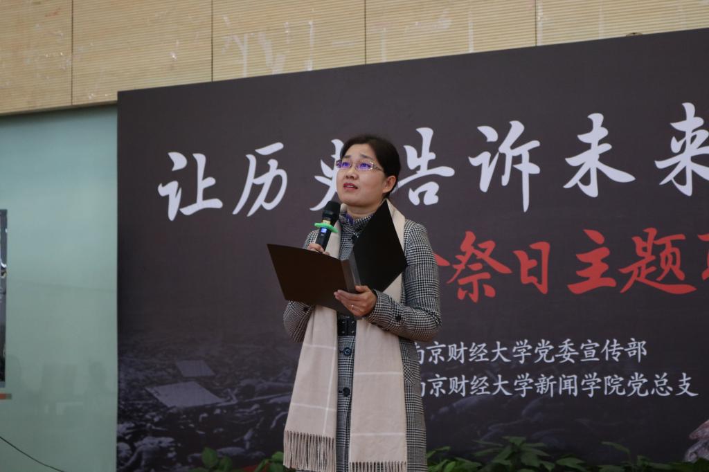 12月11日下午,第六个国家公祭日到来之际,校党委宣传部与新闻学院党总支在仙林校区图书馆世界之窗联合举办了“让历史告诉未来”国家公祭日主题联读会。校党委常委、纪委书记李茜,党委宣传部副部长秦韶华、党委学生工作部副部长张小荣、校团委书记张励行和新闻学院全体院领导、师生参加了联读会。联读会由新闻学院分团委书记孙启老师主持。
