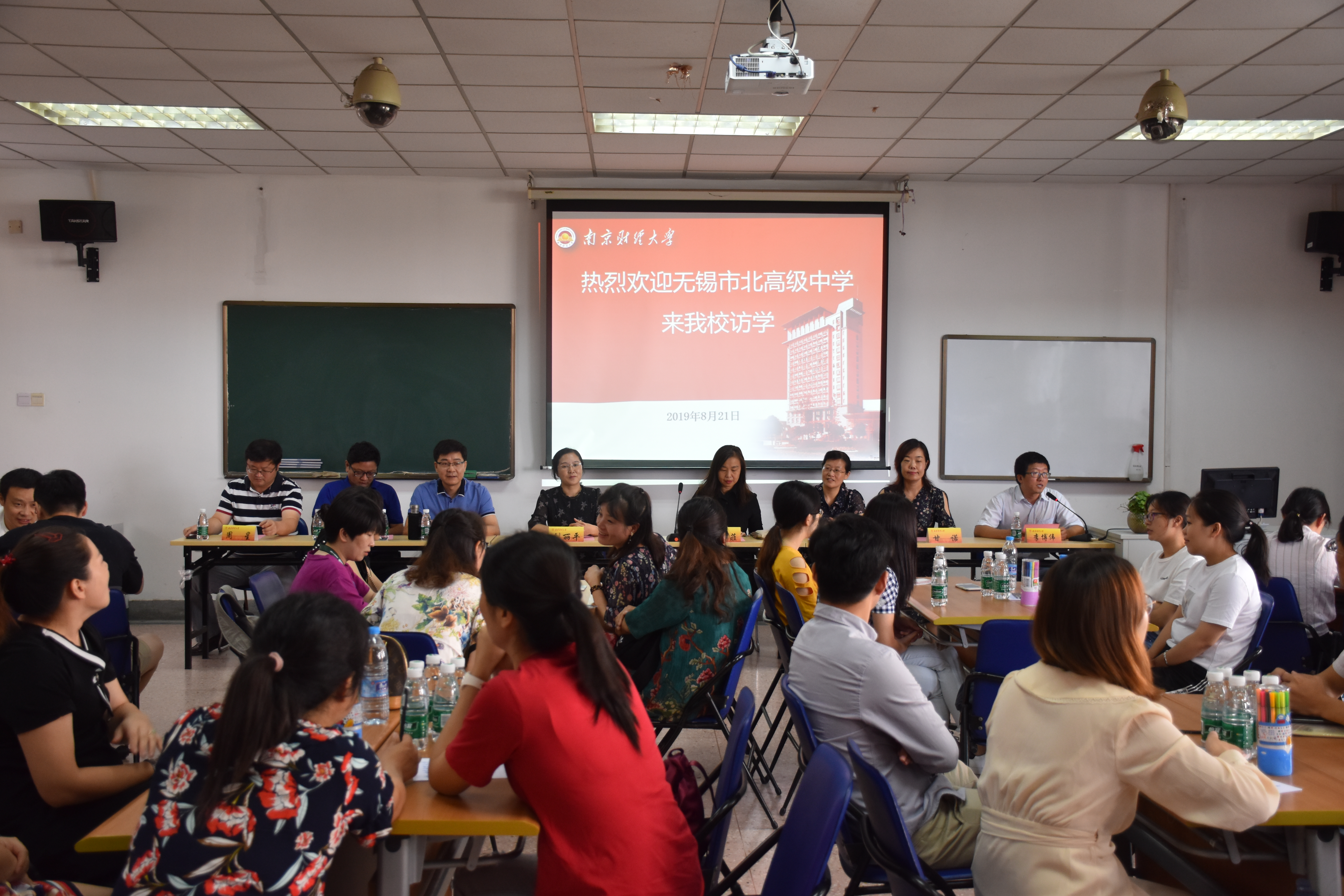 欢迎会上,学生处副处长、招生办公室主任孙菲致欢迎辞,她对无锡市北高级中学领导和老师的到来表示热烈欢迎,介绍了我校历史沿革、办学定位、人才培养等方面的情况,无锡市市北高级中学校长刘丽平对我校热情周到的安排表示衷心感谢;讲述了与南财的三个渊源,回忆往昔;并表示今后要加大与我校在生涯规划、招生指导等方面的合作。